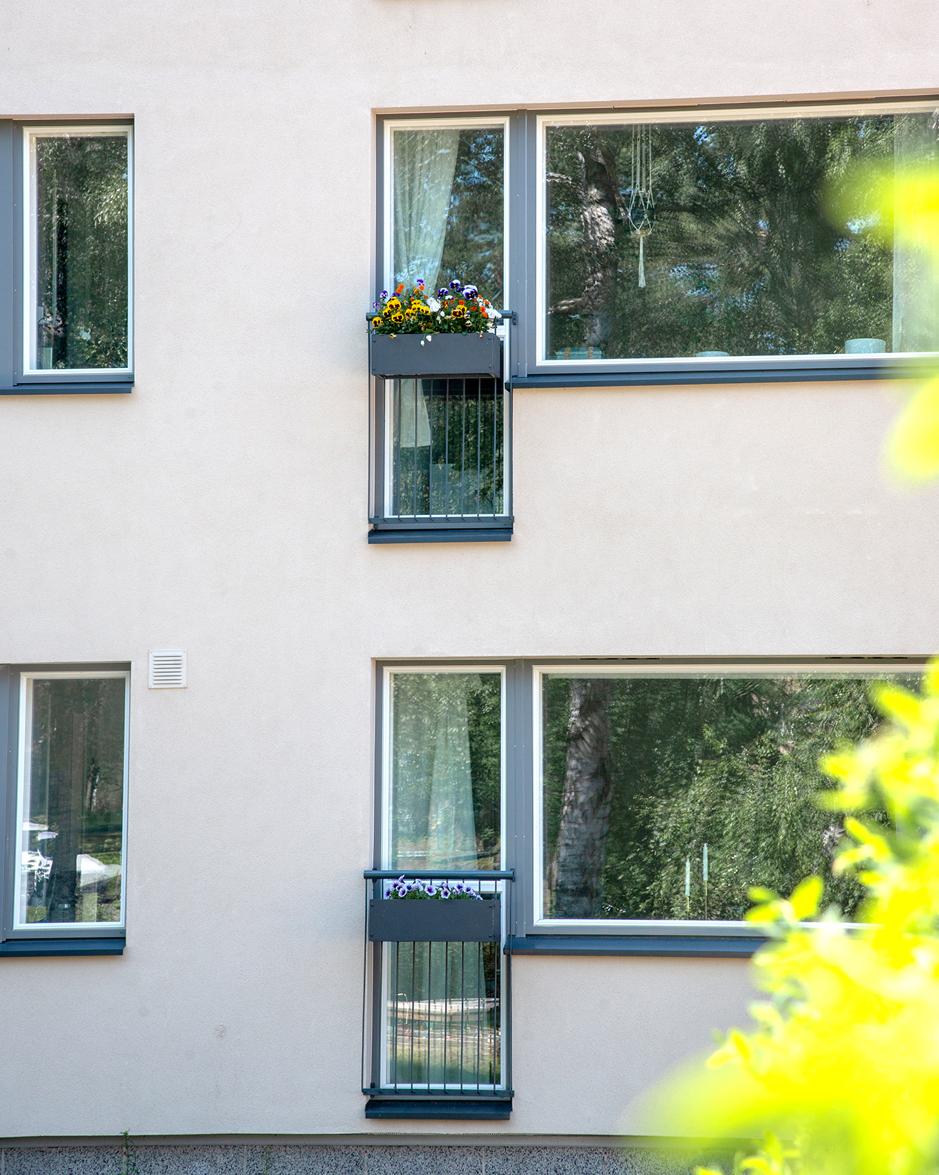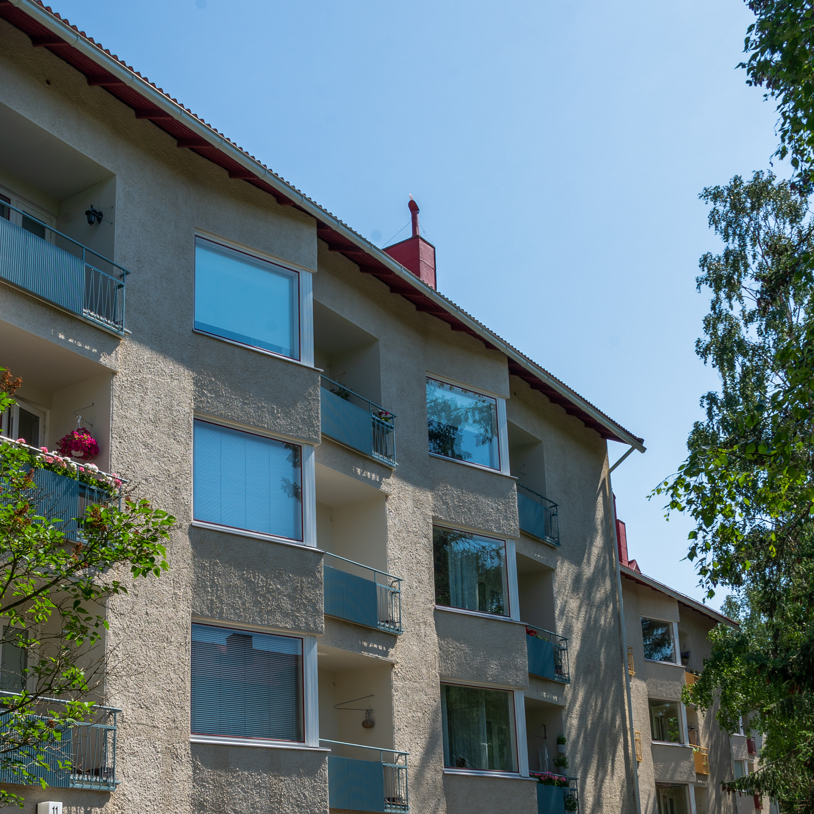 Julkisivut uusittiin perusteellisesti. Harmaat asbestisementtilevyt ja lämmöneristeet korvattiin eristerappauksella. Samalla uusittiin ja lasitettiin parvekkeet. Ikkunat ja parvekeovet uusittiin. Kerrostalon vesikaton kuitusementtilevykate uusittiin peltikatteeksi.